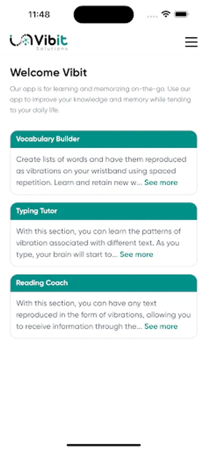 Vibit Nova is a smart wristband that makes it easy to learn new languages. Its innovative technology uses vibration to send information directly to your brain through the sense of touch, leaving your hands, eyes, and ears free. The wristband is connected to a phone app that allows you to select what you want to learn. Vibit Nova is designed to help you remember new information quickly and easily by applying the spaced repetition technique. Whether you're learning a new language, studying for a test, or just want to stay informed, Vibit Nova is the perfect tool to help you reach your goals