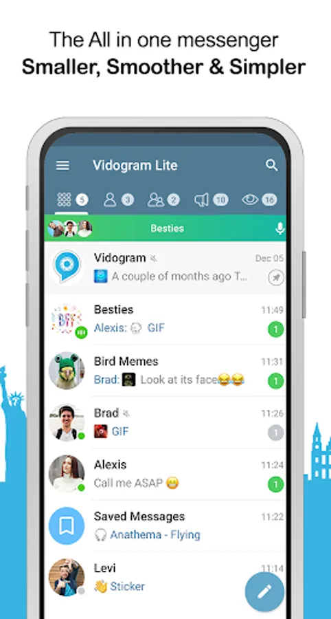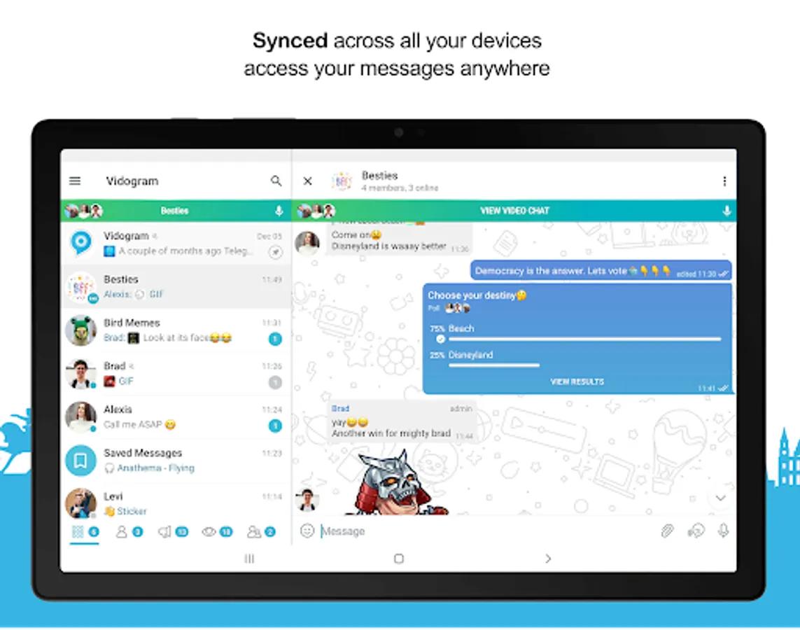 Vidogram Lite is an UNOFFICIAL Telegram client. Vidogram Lite uses Telegram API to give you a secure and fast messaging experience.