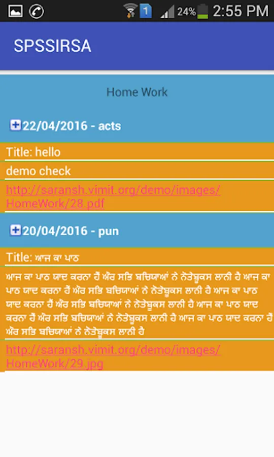 Satluj Public School, Sirsa E-School Mobile Application allows school to provide each and every information of a child to their parents in timely and cost effective manner. SPS Sirsa Mobile app provides following information to parents: Student Personal Details From School Record, Student Attendance, Tranport Details with stoppage timings, Weekly Test Results, CCE Result, Home-Work, Curriculum, Teacher Words for child, Examinations dates, School Calendar with Event Details, Upcoming competitions, School News, Fees Details, Student Library Account Details.