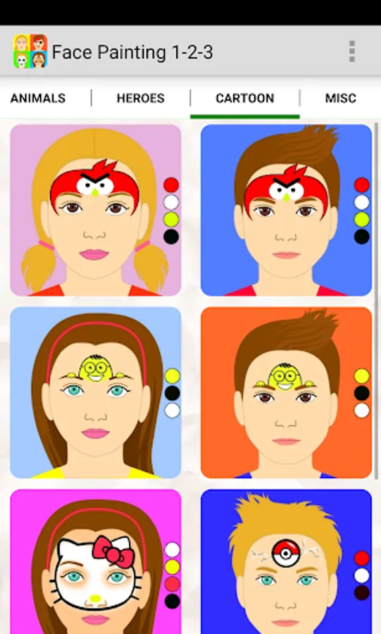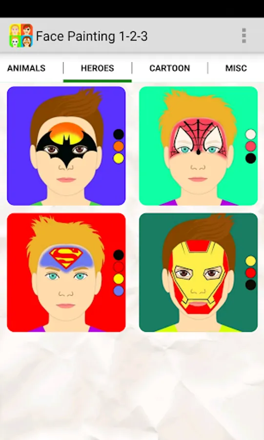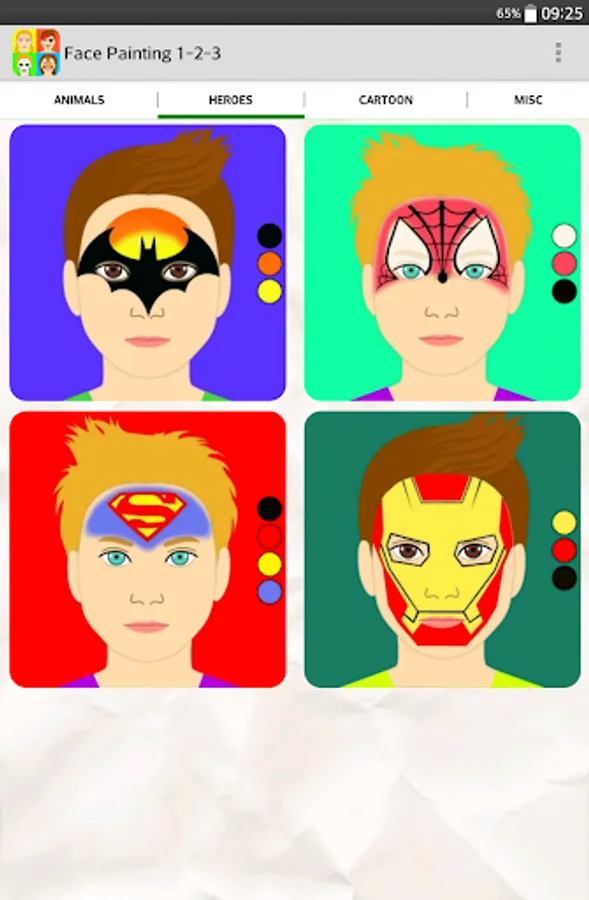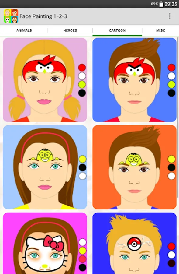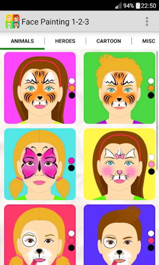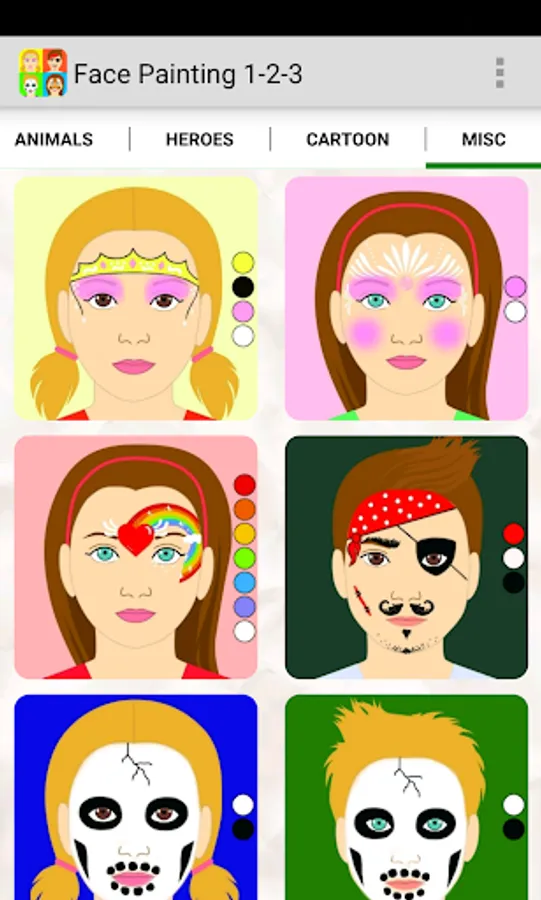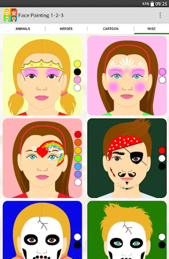 This application will help you to master face paintings even if you are not good at drawing. This is achieved with the help of clear step-by-step pictures, which are very easy to follow.