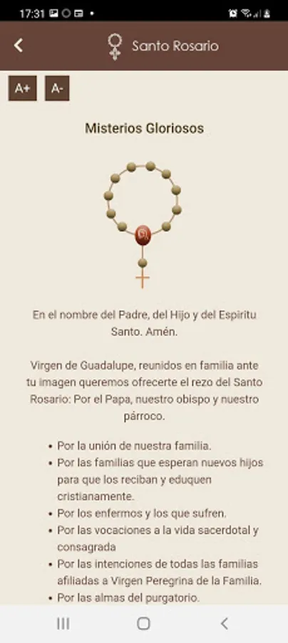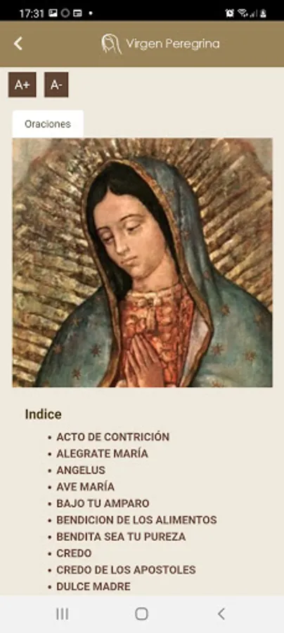 You will find different prayers with which you can accompany your prayers and you will be able to learn about the Apostolate of the Pilgrim Virgin of the Family.