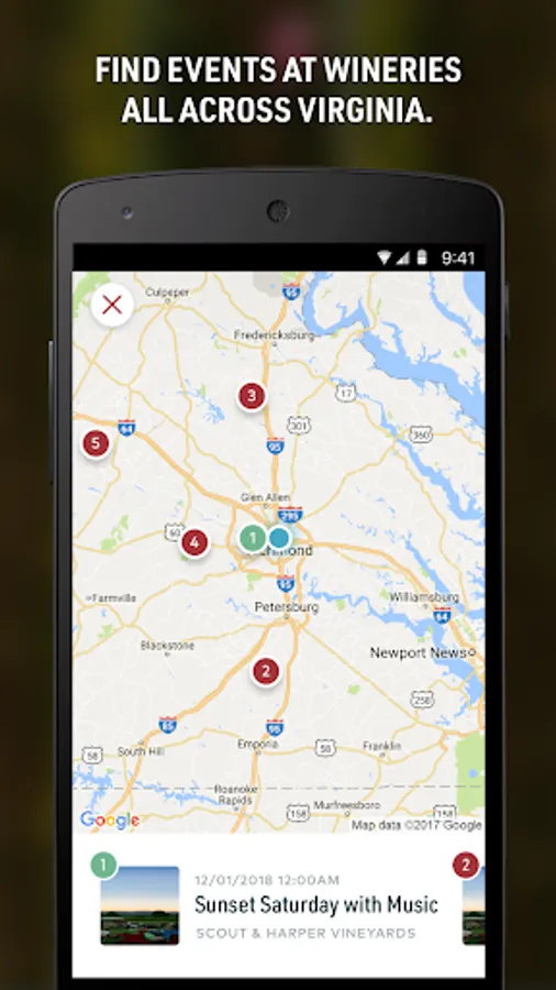 - Get notified of upcoming events from your favorite Virginia Wineries.