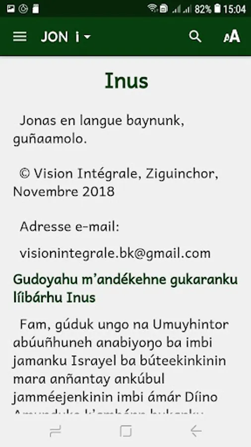 The book of Jonah is part of The Bible translated into baynunk guñaamolo language. With this application you can read and listen to Jonas in baynunk guñaamolo.