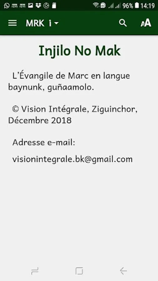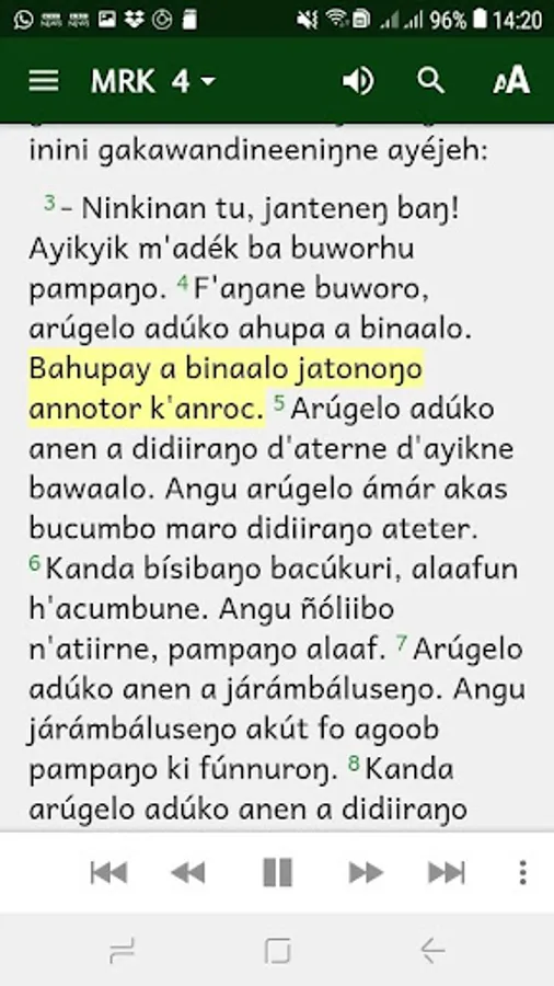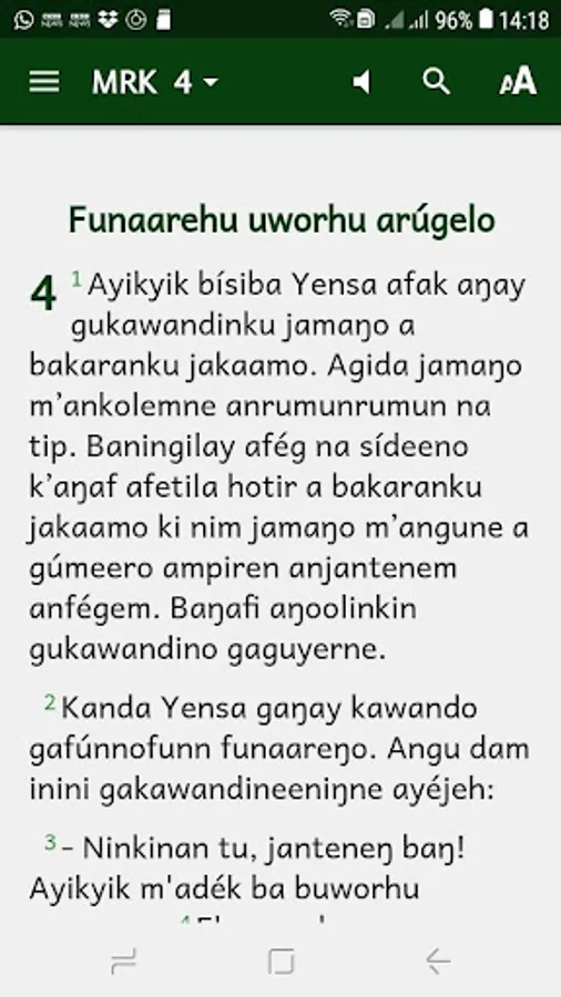 The Gospel of Mark is part of The Bible translated into baynunk guñaamolo language. With this app you can read and listen to the Gospel of Mark in baynunk guñaamolo.
