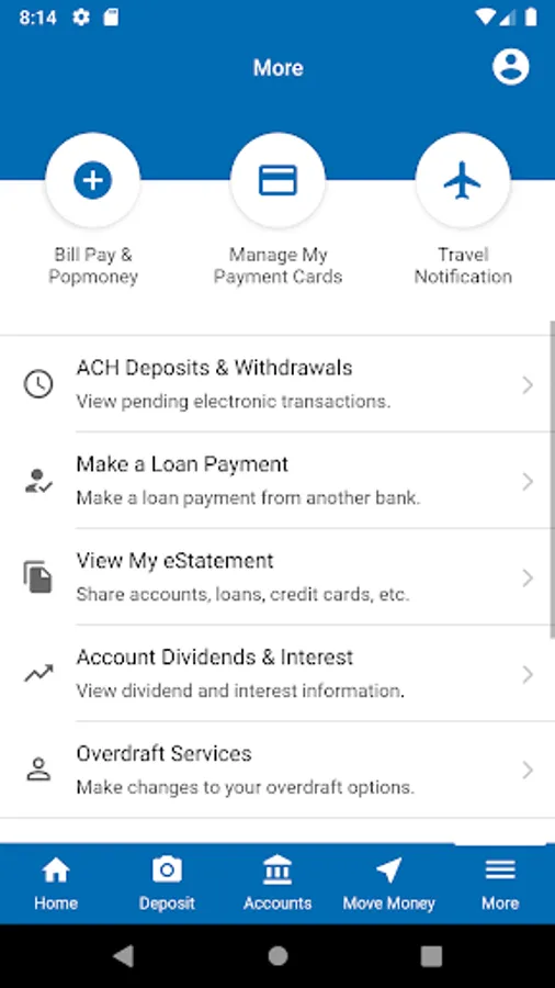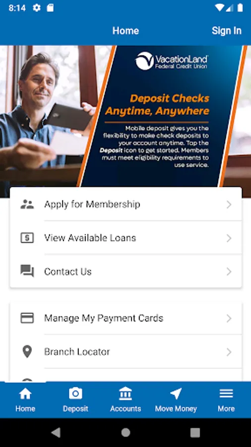 Our mobile app provides members convenient access to Vacationland Federal Credit Union's mobile website, mobile check deposit, mobile banking, branch & contact information, and help.