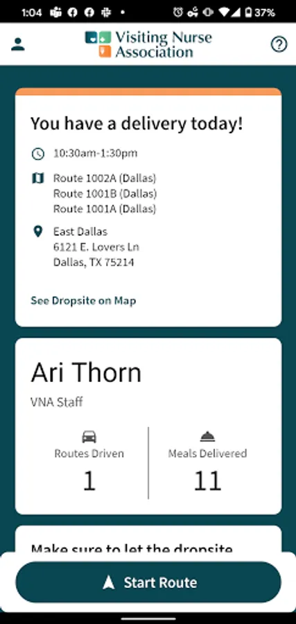 Dallas, Let’s Do Lunch! Your delivery experience just got easier with the VNA Meals on Wheels App allowing volunteers and drivers to: