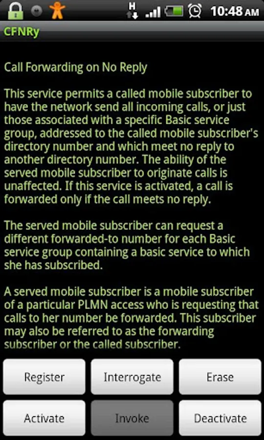 - With each supplementary service, you can: Register/Erase, Activate/Deactivate, Interrogate (check status) and Invoke the service.