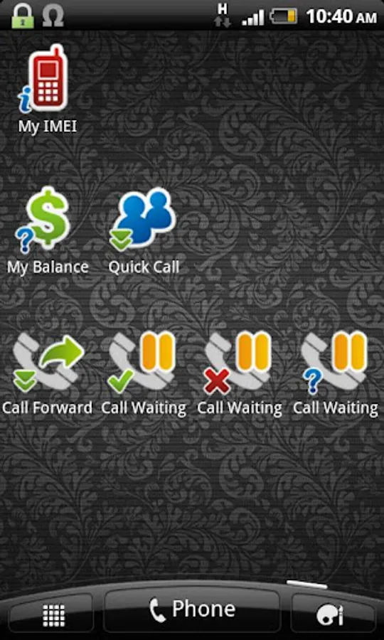 In short, all things you can do with the dialpad, you can create a shortcut on the home screen to make it easy to access, by using this app. You can make a shortcut to call a phone number, shortcut to activate/deactivate or to check the status of the supplementary services like call forwarding, call barring... with a single click. Or you can make a shortcut for the USSD command (e.g for balance checking) or MMI command (Man-Machine Interface, e.g *#06# for IMEI, *#*#4636#*#* …).