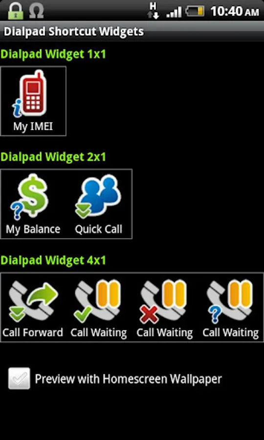 - Click “Preview with Homescreen Wallpaper” check box to see how the widgets will display on the real home screen.