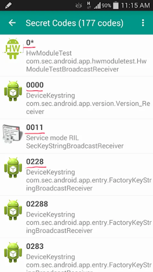 * Secret Codes: List all of Samsung secret codes (HiddenMenu) on your device. Note: You may need ROOT to launch secret codes (use 'Launch 0' method).