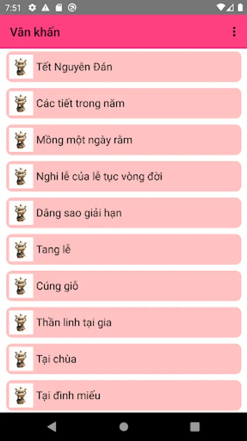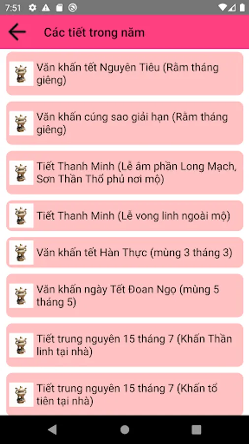 The prayers of Mùng 1 and the fifteenth day of every month: The Worship of the Full Moon in January, the prayers of the R fifteenth of July, the prayers of the Spirit, the prayers of the Full Moon in August, the prayers of the Lung 1