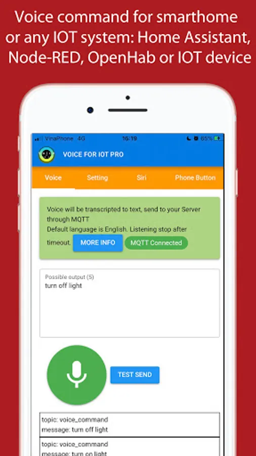 Voice command app for any IOT: Home Assistant, Node-RED, OpenHab or any device like Arduino, ESP8266, ESP32, support HTTP POST API or MQTT: