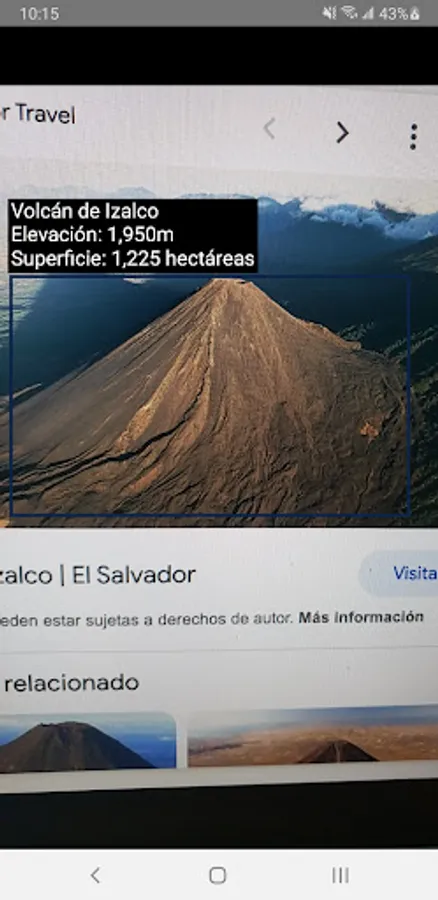 Mobile application that uses a data model previously trained with images of the Izalco Volcano for its recognition.