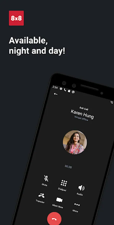 8x8 Work Mobile includes a Cloud phone, HD video conferencing, chat, directory services and more. It integrates seamlessly with 8x8 Work Desktop to provide users with the same features and benefits when they work remotely as they would have in their office.