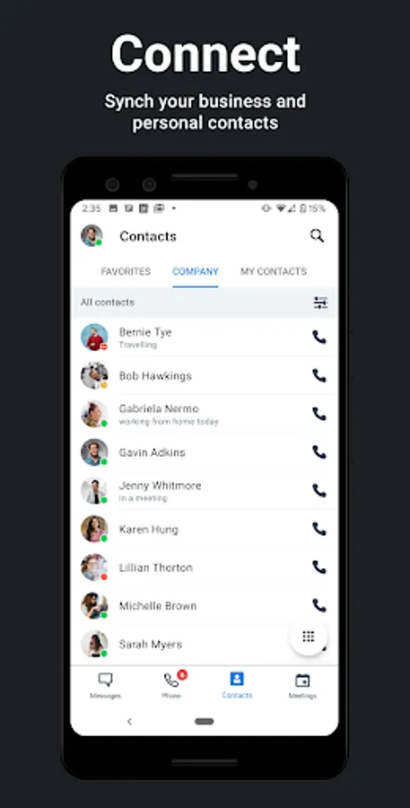 Make HD audio calls with contacts from your company directory or personal contact list.