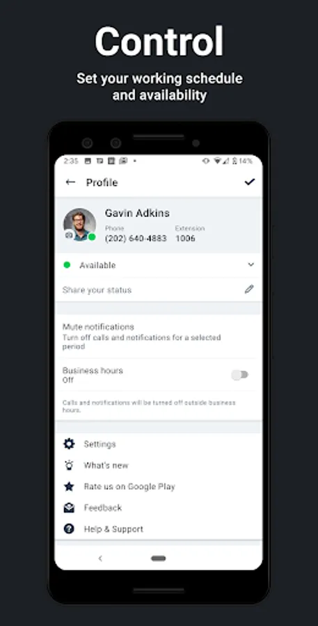 Set business hours and turn-off incoming calls and notifications either for a selected period of time or outside of your work hours