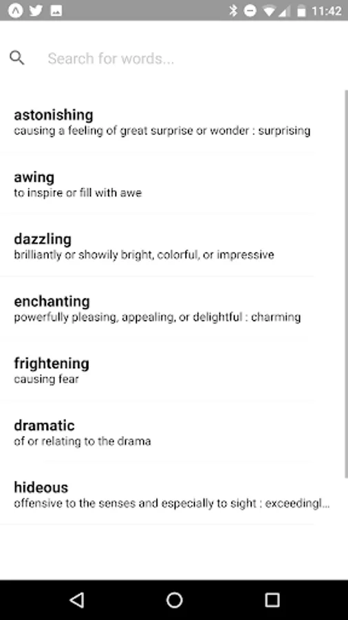 Easily search and save words by searching for definitions. Backtionary lets you finally solve those situations where you know what a word means, but you don't remember the word.
