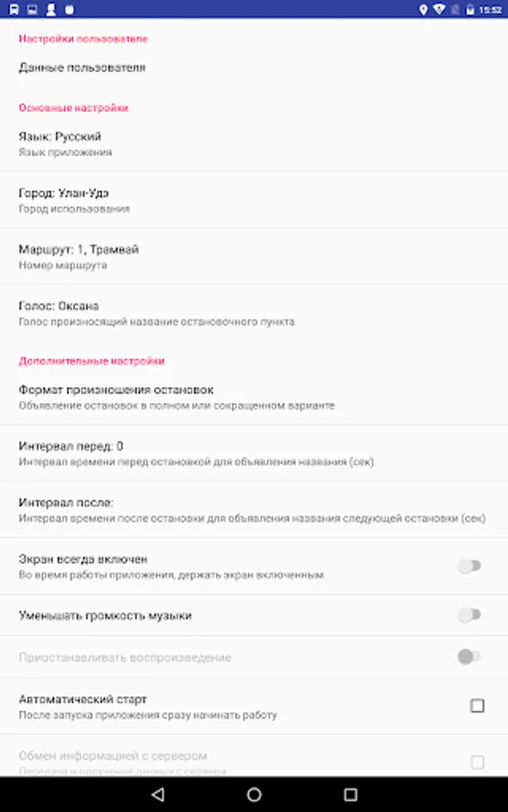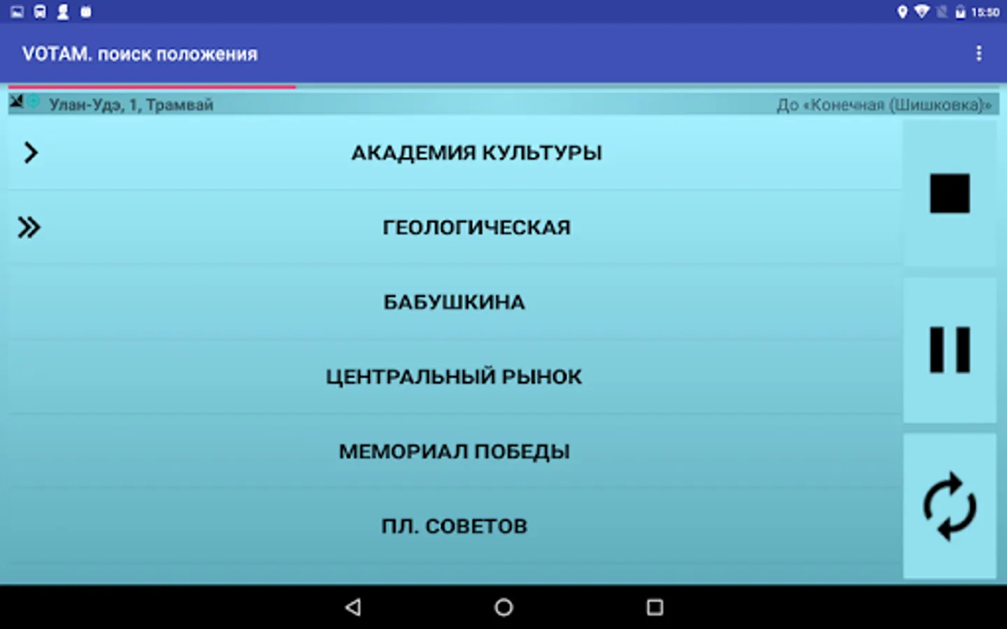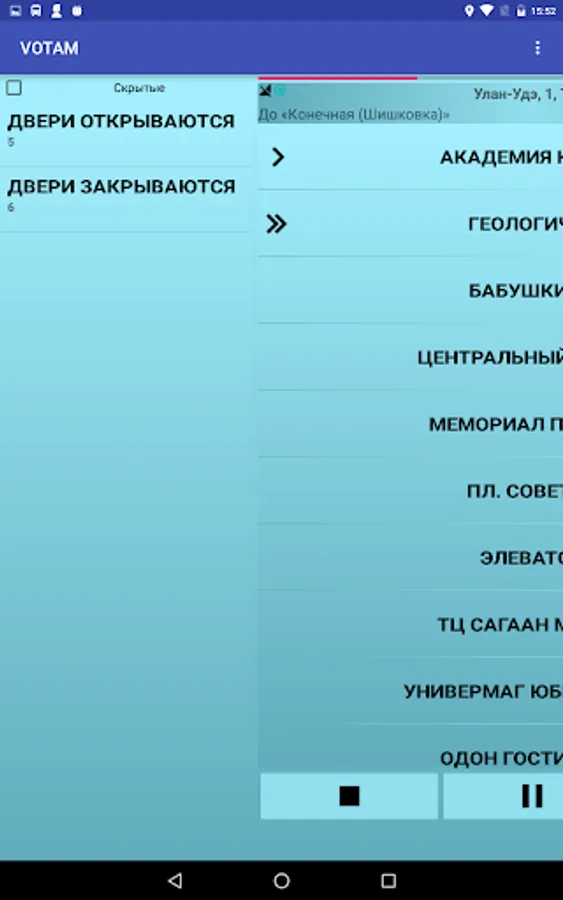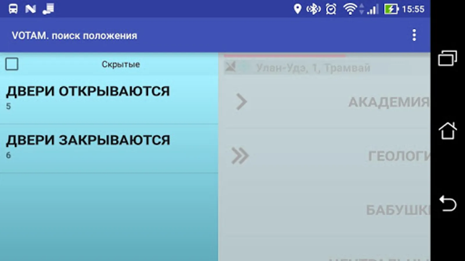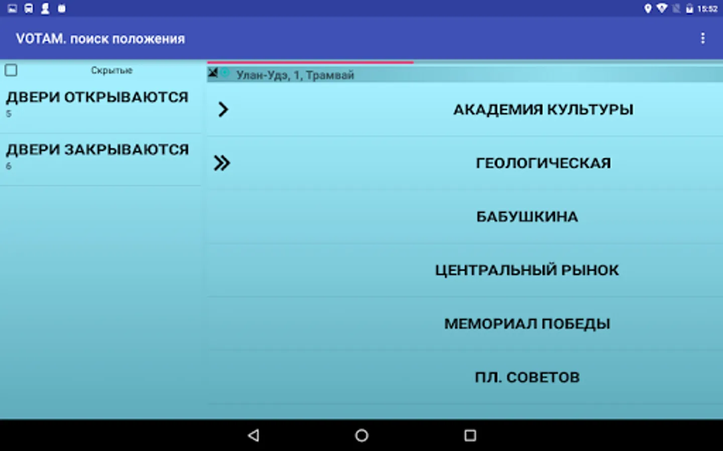 All trams, trolleybuses, buses and taxis in your smartphone! The app will announce the name of the stop at the approach to it, and the name of the next stop after the departure of the current.