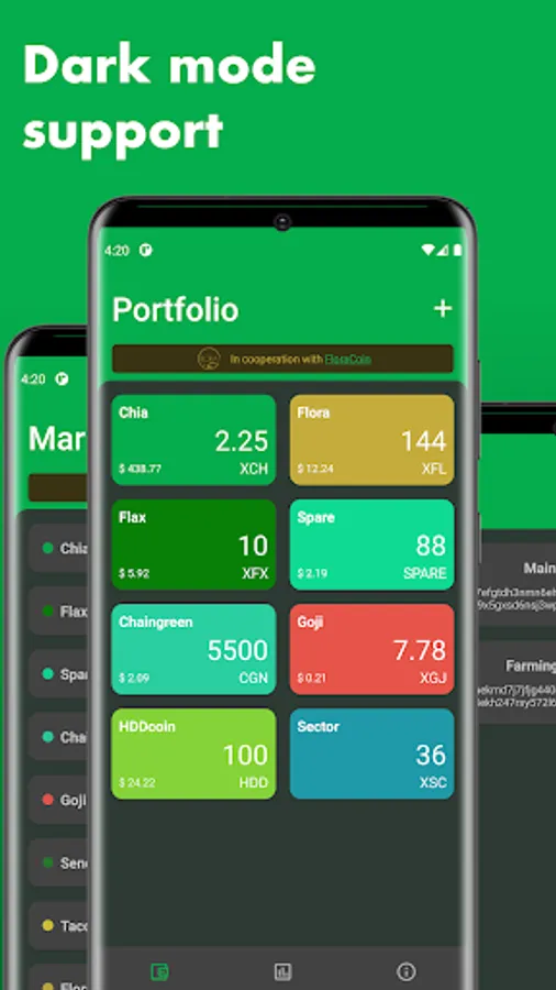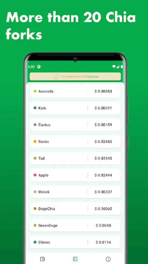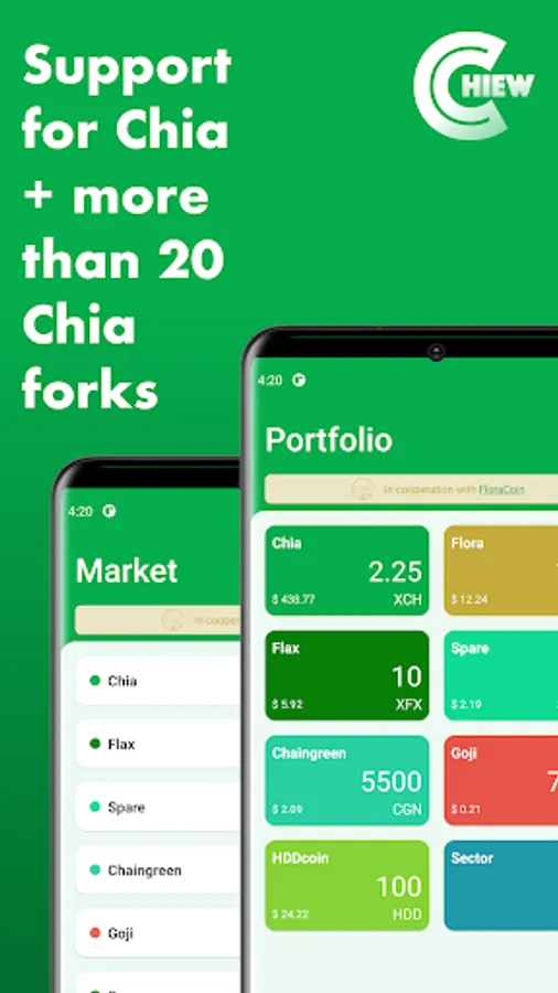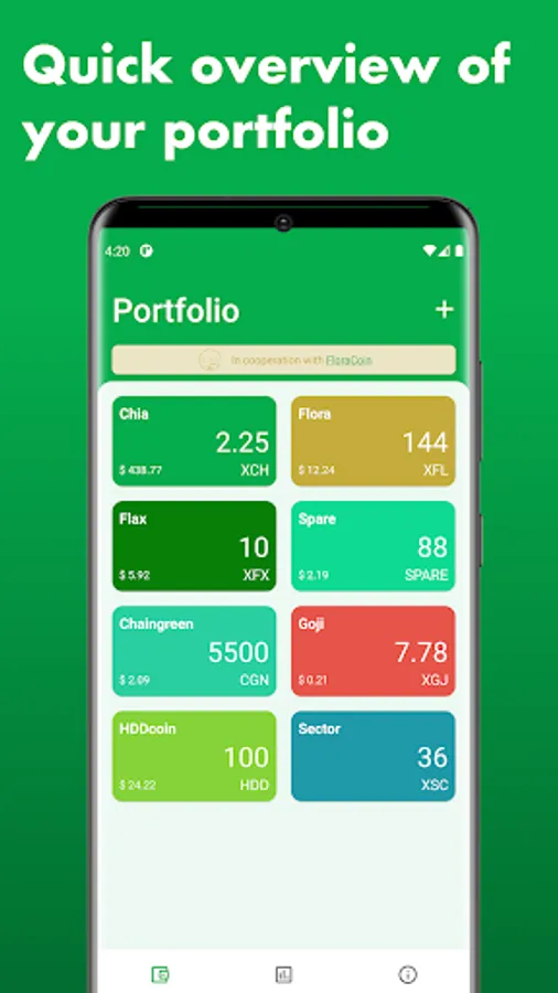 Monitor your portfolio and the prices of Chia, Flora, Flax, Spare and over 50 other Chia forks.