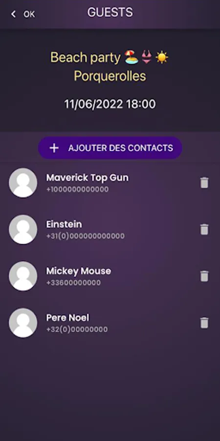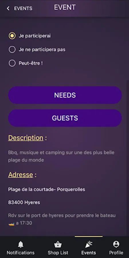 Your guests receive the invitation in real time, respond if they participate or not and tick what they will bring back.