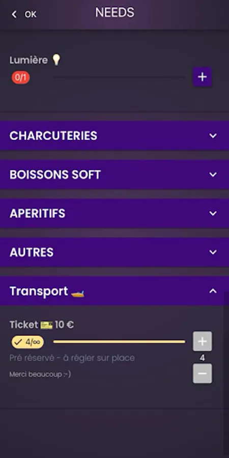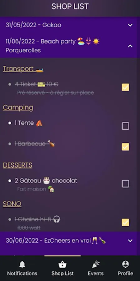 Open the app, create your evening, dinner, picnic or other, invite your friends and create the shopping list and needs for the event.