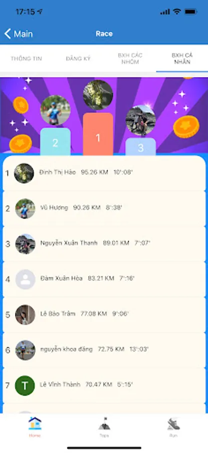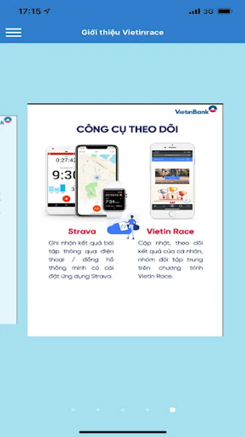 VietinRace supports recording, managing, statistics, ranking, honoring results by individual/group/group of online sports tournaments (running, cycling and swimming) organized by VietinBank, through the application. Strava sports software. At the same time, VietinRace builds a community to connect people who share the same passion for the three triathlon sports and spread good values, along with the humane message "Live healthy to love".