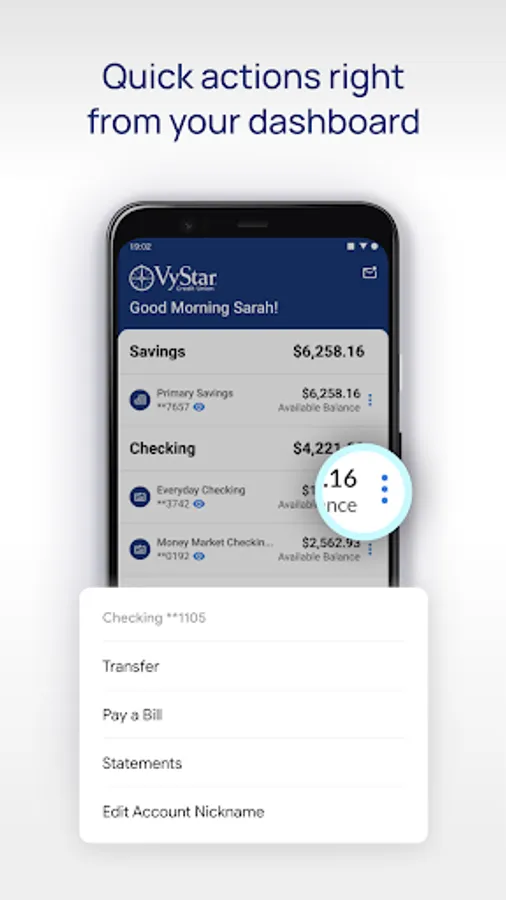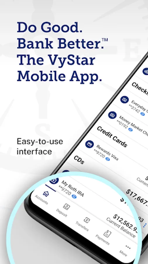 The new VyStar Mobile app offers the convenience of money management on the go. VyStar Mobile enables you to bank on your terms with seamless integration that allows you to: