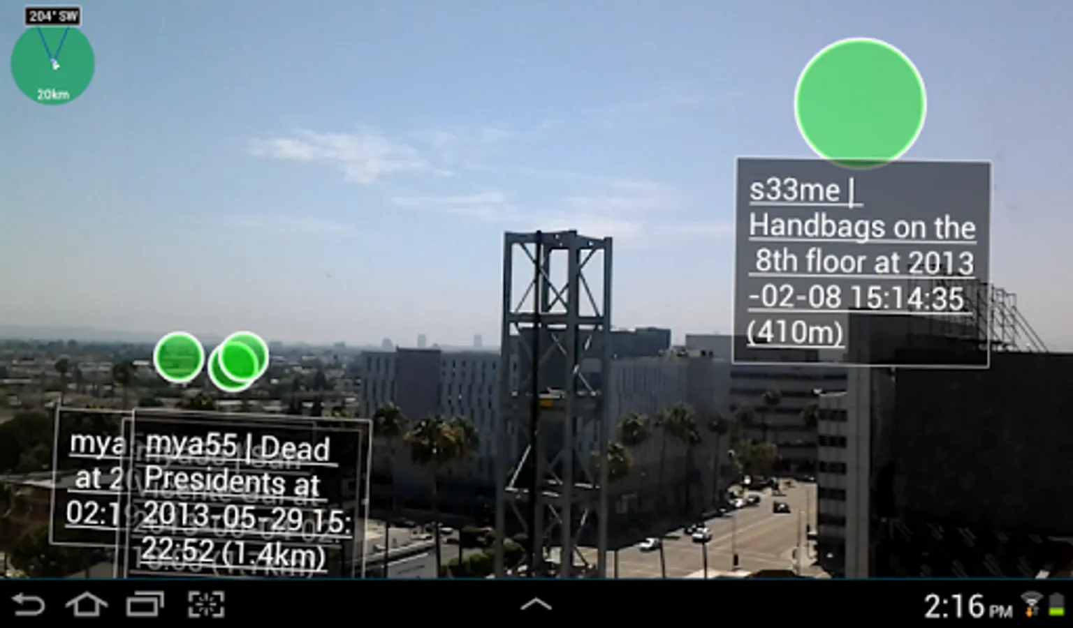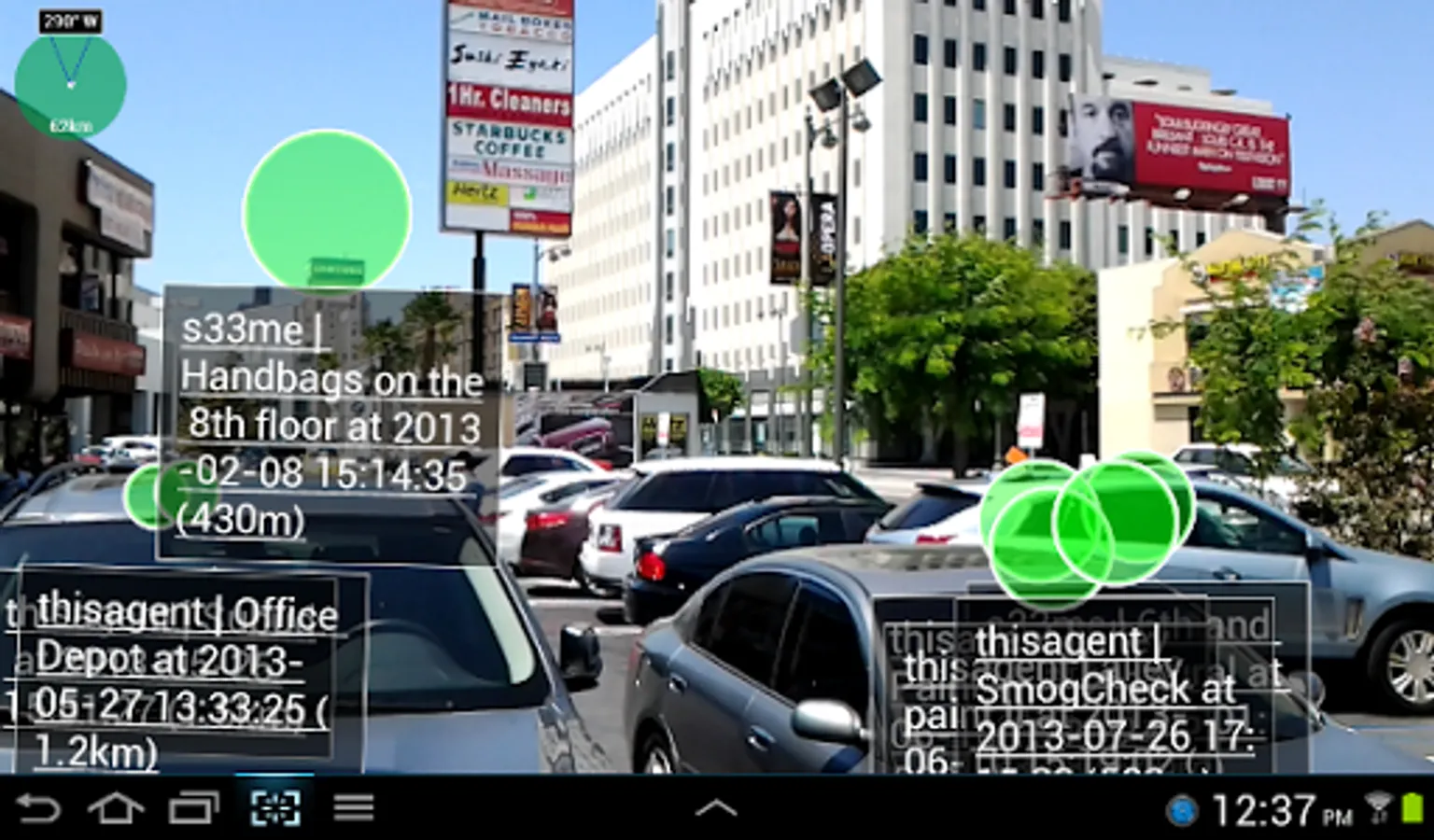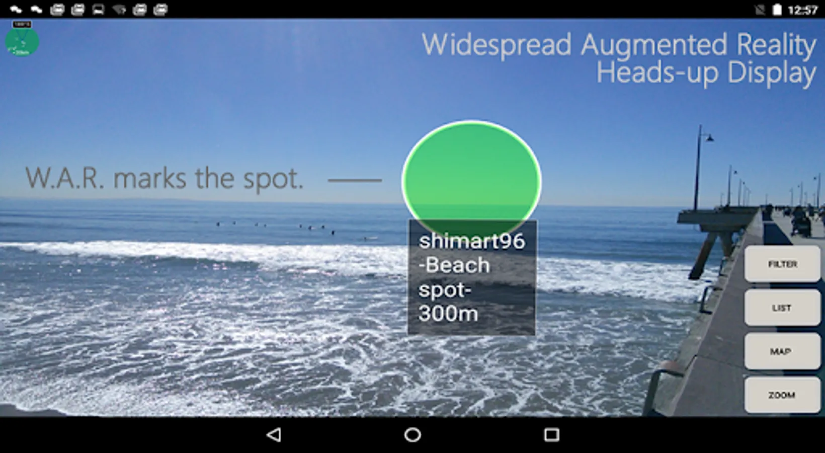 Turn your camera into a personal H.U.D. (Heads Up Display) that creates and floats digital way points mapped to real world points of interest (P.O.I). You and other WAR users anonymously create these way points by geotagging interesting locations, such as favorite hang outs, hiking trails, travel destinations, secret meet ups or even your parking space. Nearby W.A.R. users can interact with your geotags through their own heads up display. So stop looking at your phone, but rather, look through your phone at widespread augmented reality. Please note that the augmented reality camera view only works on devices with a hardware accelerometer sensor.