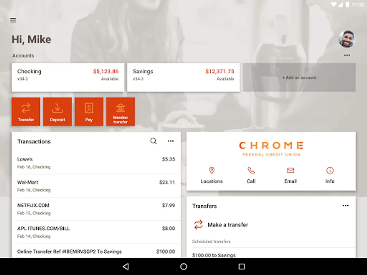 The CHROME FCU mobile app is simple and secure banking at your fingertips.