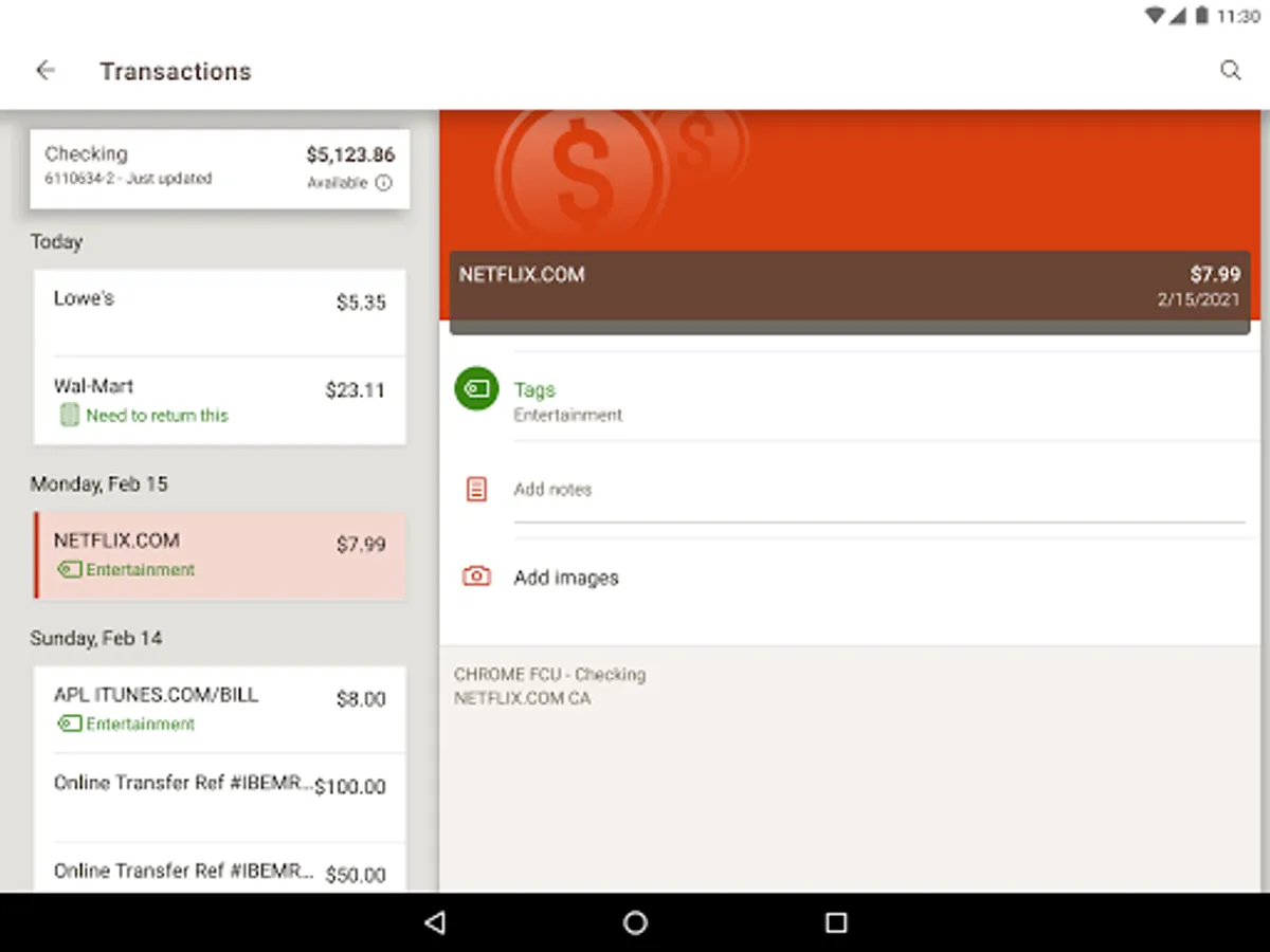 Stay organized: Add tags and find exactly what you’re looking for when searching through your finances.