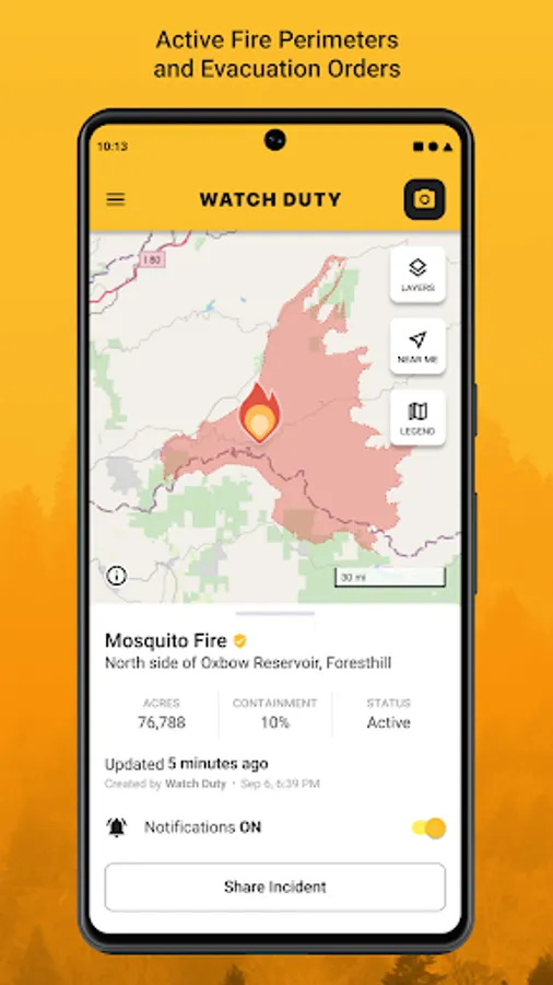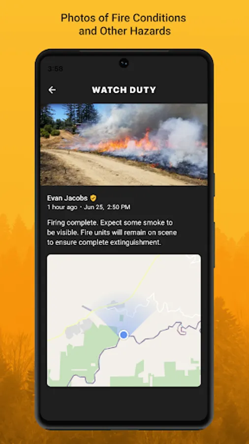 Watch Duty is the only wildfire mapping and alert app powered by real people giving you real-time information vetted by trained professionals, not robots. All other apps only rely on government alerts which can be hours late or flat out non-existent.