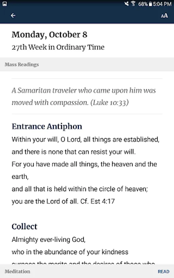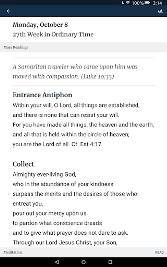 • Daily meditations based on Mass readings.