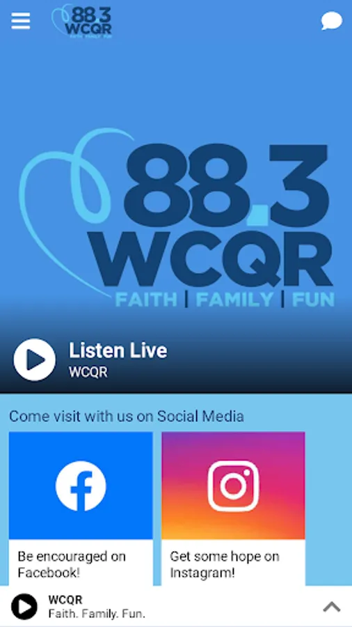 Everyday, we are purposed to serve you in ways that remind you that you are loved and that will inspire you to live passionately for Jesus Christ . . . through every song, every word spoken, and every community connection.That’s our mission.This is why we are passionate and focused.This is why our music and all we do is relational, funny, inspiring, and thought provoking.Everything at WCQR is filtered through our mission: Each phone call and email interaction, each song selection, how we interact with our friends at an event and even responding to a prayer request.Our motivation is to leave you inspired to grow closer to Jesus.