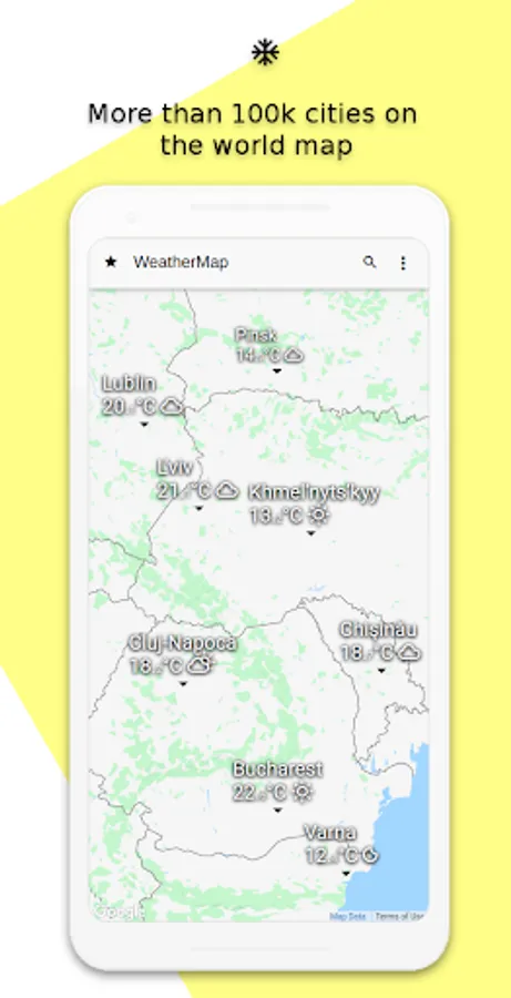 WeatherMap makes weather monitoring much easier. Add bookmarks for your favorite cities and watch for for weather conditions in your town and surroundings.