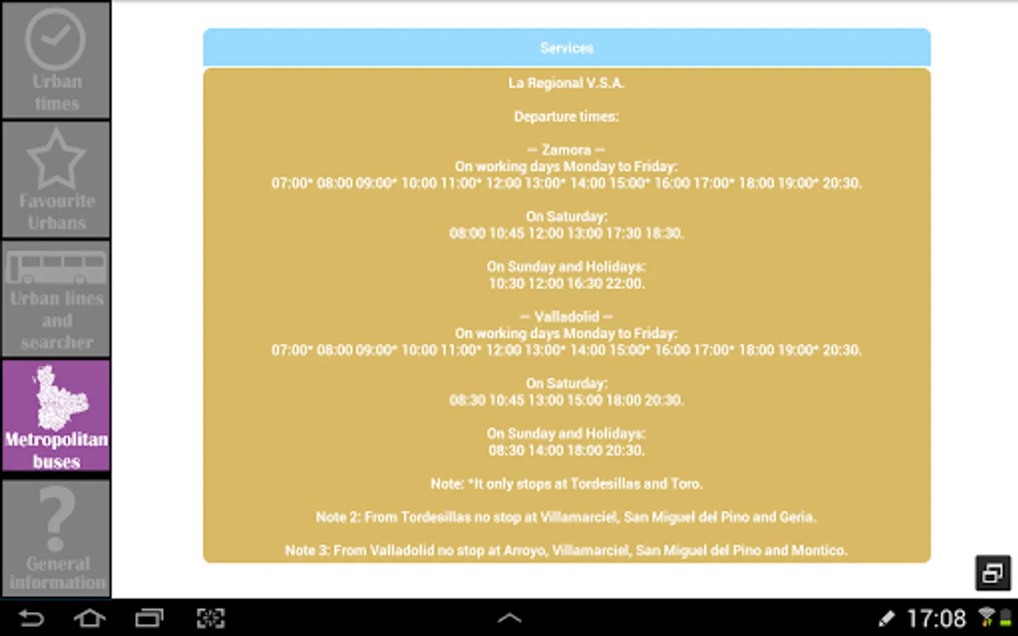 - An application to see waiting times for urban buses (Auvasa) of the city of Valladolid (574 bus stops). In addition to information from other city buses in the province. You also can share times through Whatsapp, Twitter, Bluetooth...