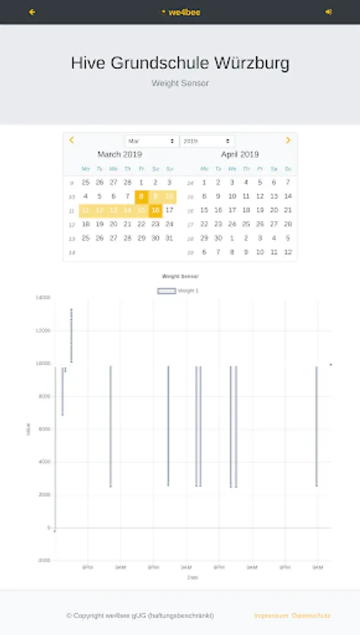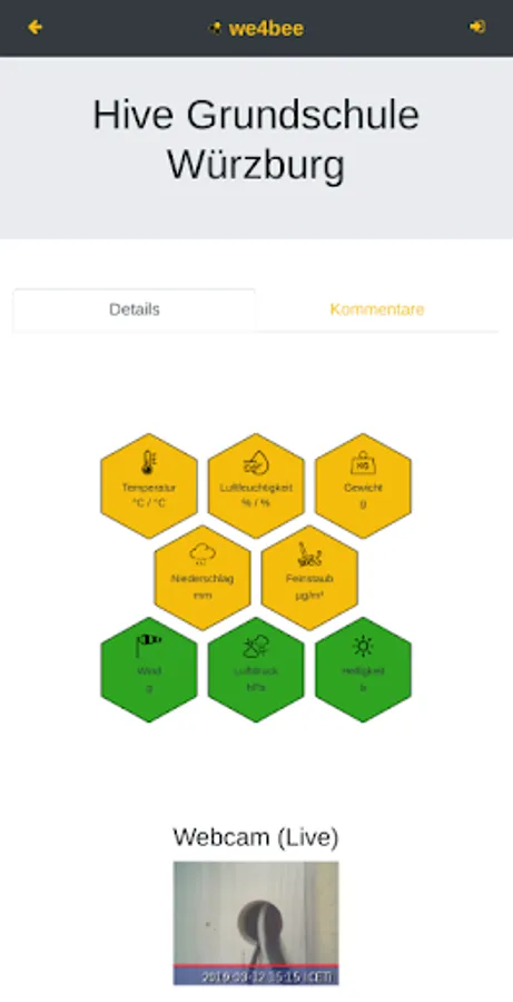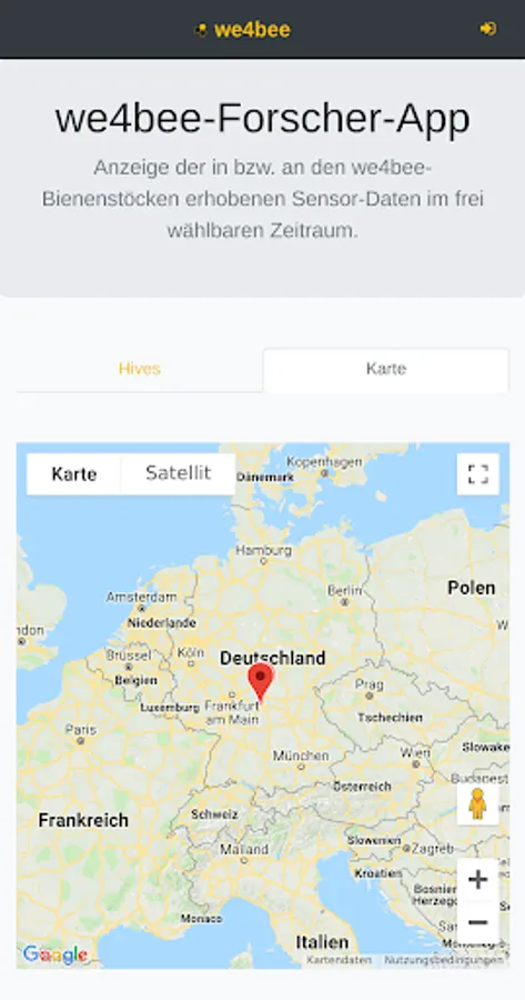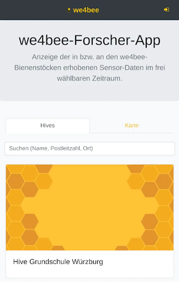 The we4bee app enables display of gathered sensor data (including e.g. temperature, humidity, air pressure, acoustics, particulate matter, wind, rain, ...) of all we4bee high-tech beehives worldwide. Share observations, follow one or more beehives, compare data histories and become part of an international research team. Help us better understand the needs of bees and other insects and make an important contribution to environmental protection.