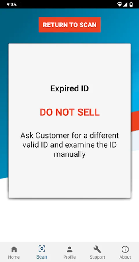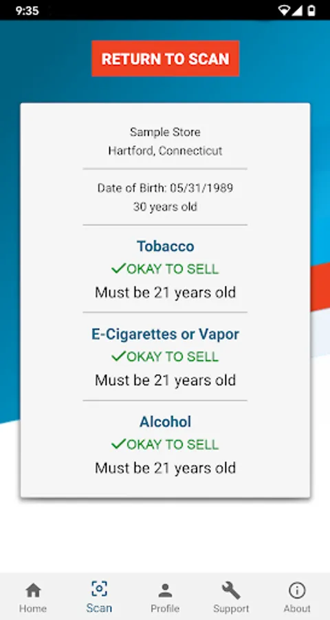 Results show the customer’s age, their date-of-birth and "OK to Sell" or "Do Not Sell" results for each of these products: tobacco, e-cigarettes and vapor and alcohol.