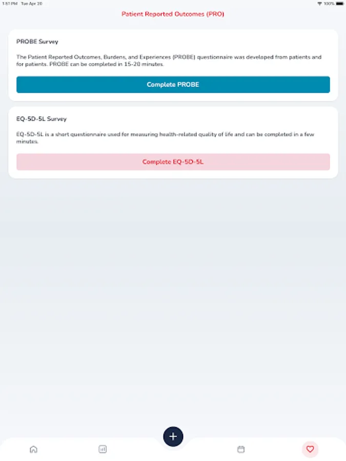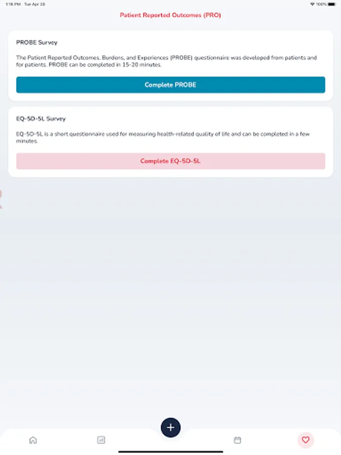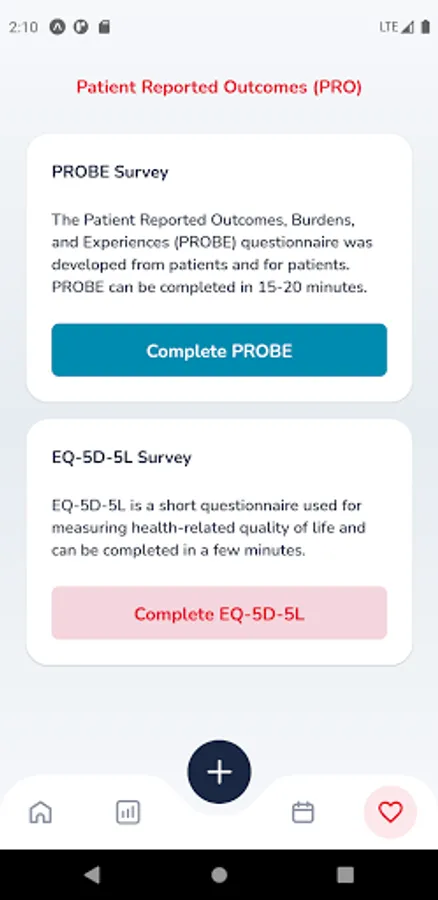 • Record and monitor changes in your health status through EQ-5D-5L or PROBE questionnaire.