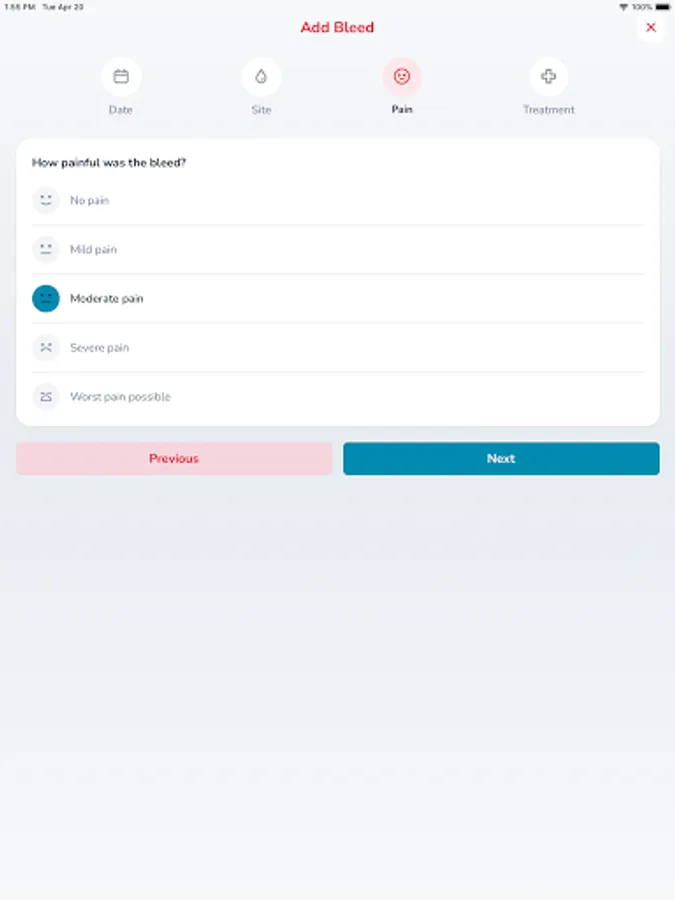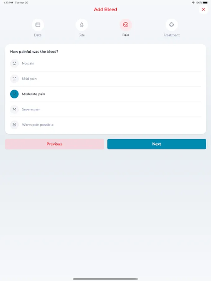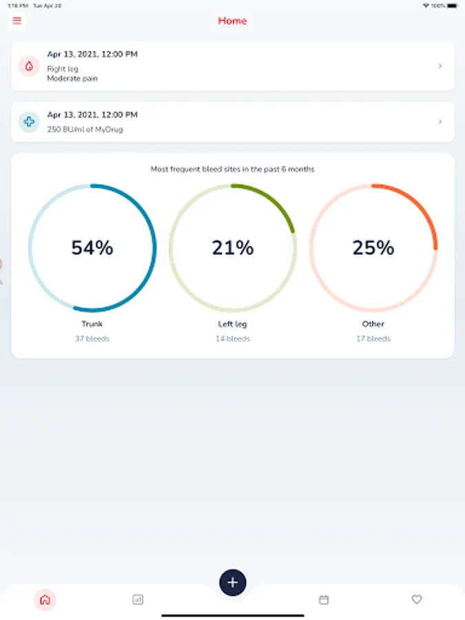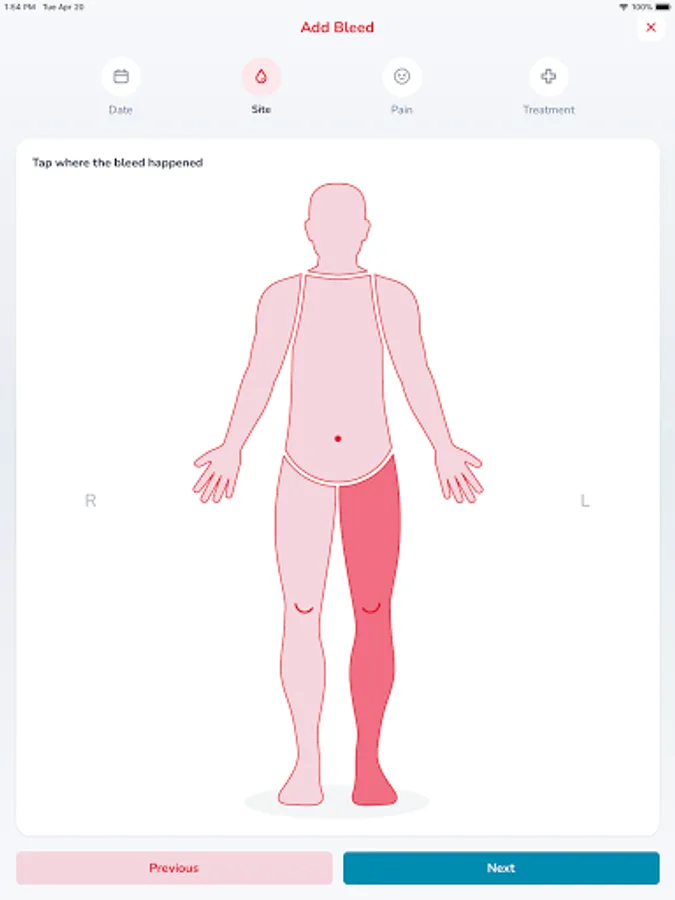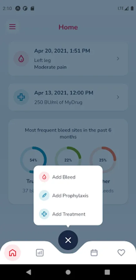 • Access your bleeds, treatment and health status records.