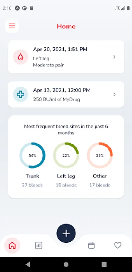 • Quickly record your bleeds and your treatment