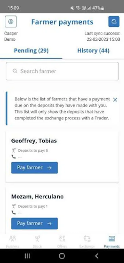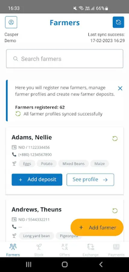 Farm2Go connects smallholder farmers to new markets, giving them an increased chance to earn a better price for their commodities. The mobile application for Aggregators streamlines their operations, allowing them to register farmers, collect deposits, and keep track of stock, all while working offline in remote areas. The web application for Traders provides a platform for viewing available stock and negotiating offers with Aggregators, resulting in improved business relationships. Smallholder farmers receive SMS notifications on all system activities, ensuring transparency and accountability in the value chain.