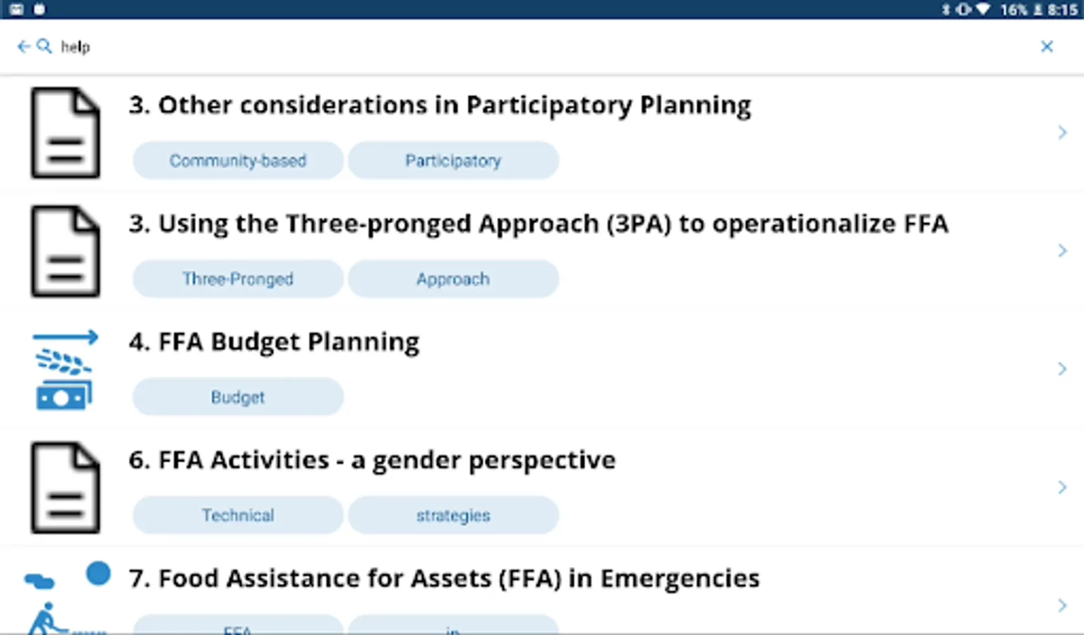 This app allows WFP staff to remotely access the FFA manual hosted on WFPs internal manual platform from their mobile devices (iOS and ANDROID).