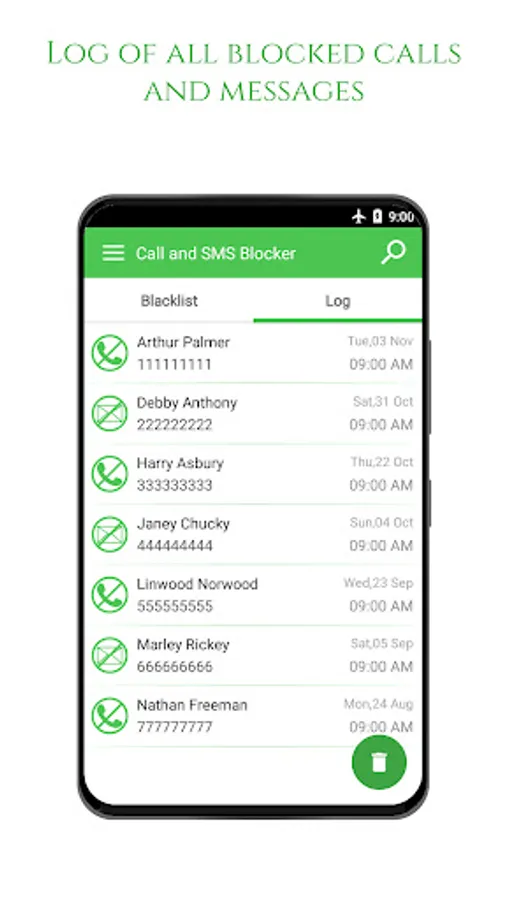 Easy call blocker and SMS blocker app with many call blocking and SMS blocking options.