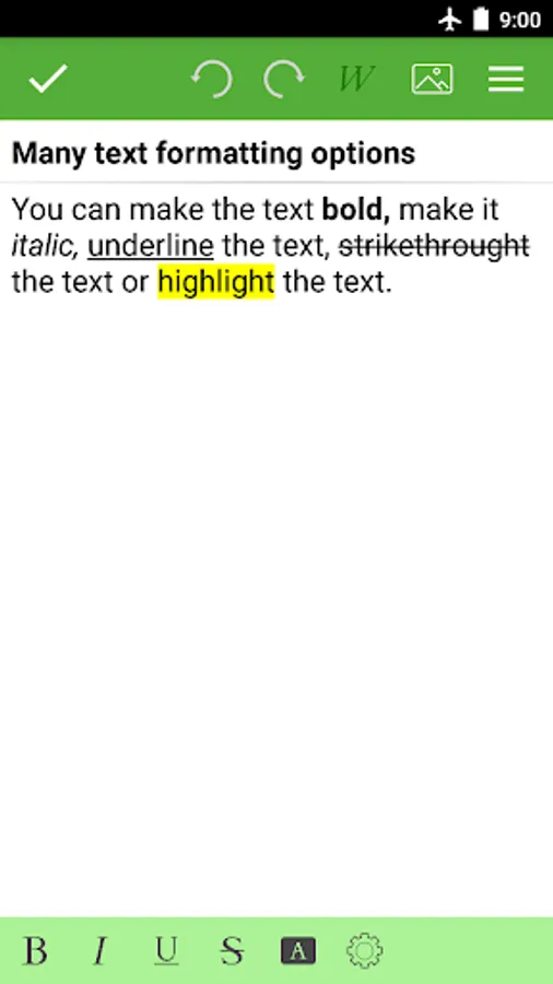* Wordpad styles : bold, italic, underline, strikethrough and highlight options.