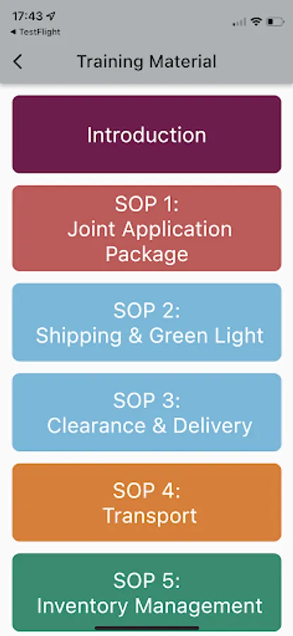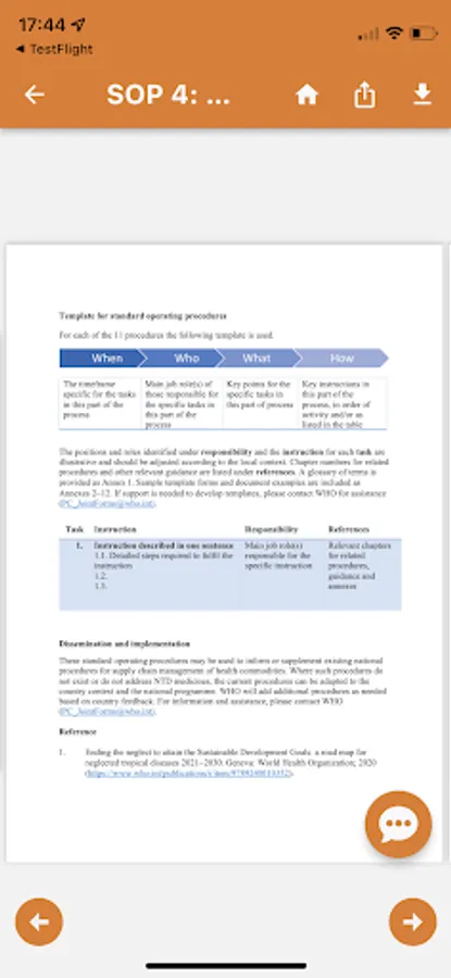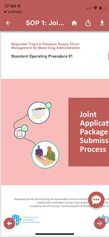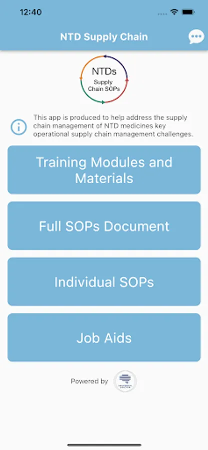 To facilitate access by national, regional and district-levels stakeholders and Community Drug Distributors (CDDs) to the SOPs for supply chain management of neglected tropical disease (NTD) health products and their associated files as part of a training package for the target users via a cross-platform mobile application for iOS and Android platforms. We believe that this mobile application will facilitate the effective use of these SOPs by countries and their implementing partners at the various levels