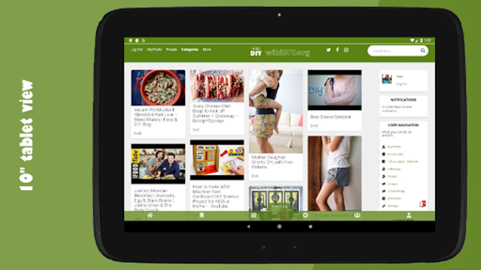 Projects sorted in categories: Animals and pets, Art and Design, Cars and motorcycles, Computers, Crafts, Electronics, Fashion, Food and drink, Games, Gardening, Geek, Gifts, Hair and beauty, Health, Hobby, Holidays and Traditions, Home decor, Home improvement, Humor, Kids, Others, Outdoor, Phones, Sewing and Stitching, Sports and Fitness, Survival, Technology, Toys, Weddings, Woodworking, Youtube DIY