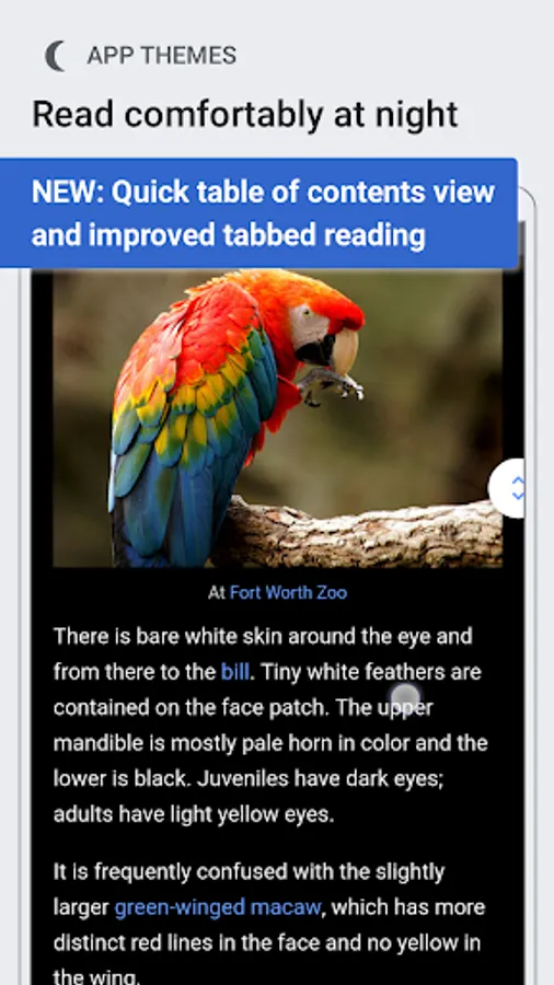 Table of contents: swipe left on any article to bring up the table of contents, which lets you jump to article sections easily.