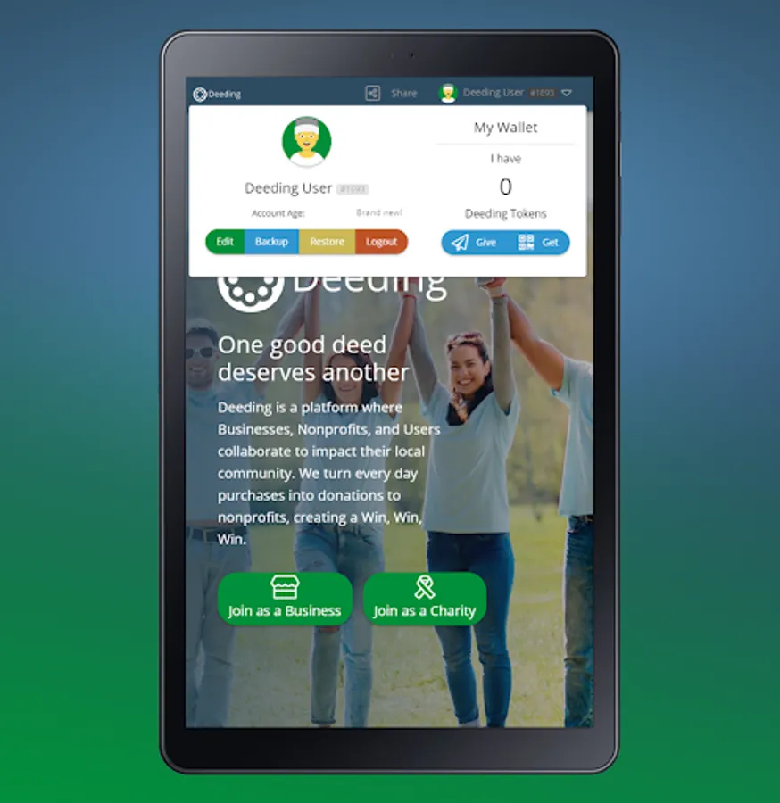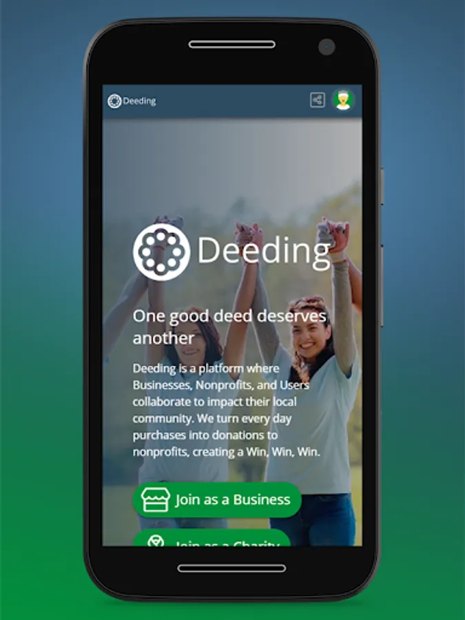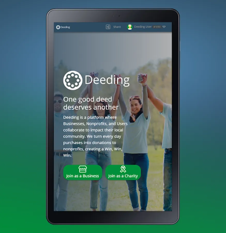 Deeding is a platform where Businesses, Nonprofits, and Users collaborate to impact their local community. We turn every day purchases into donations to nonprofits, creating a Win, Win, Win.
