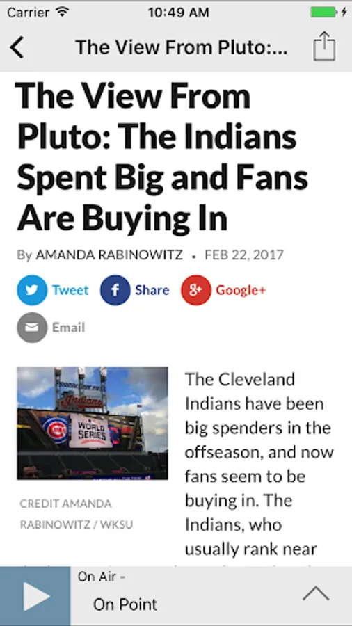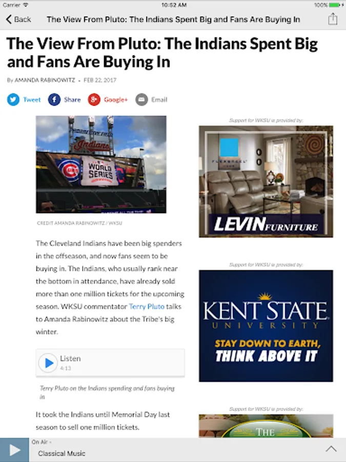 The WKSU Public Radio App displays the web page associated with the program or program segment you are listening to On Demand so you can explore for more information.