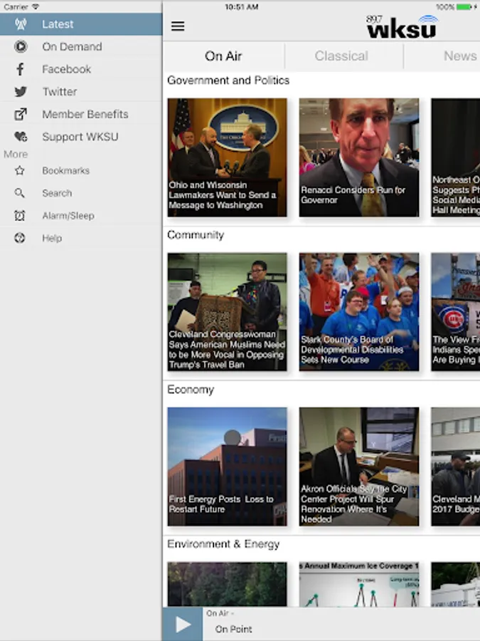 The WKSU Public Radio App allows you to listen to WKSU, pause and rewind the live audio and view the program schedule all at once. You can explore On Demand content and wake up to WKSU with the alarm clock.